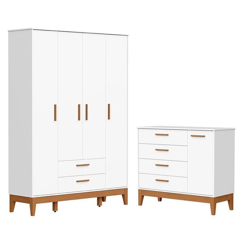 Jogo De Quarto Infantil Flip Guarda Roupa 4 Portas E Cômoda 1 Porta Branco Fosco - Reller Móveis Branco Fosco