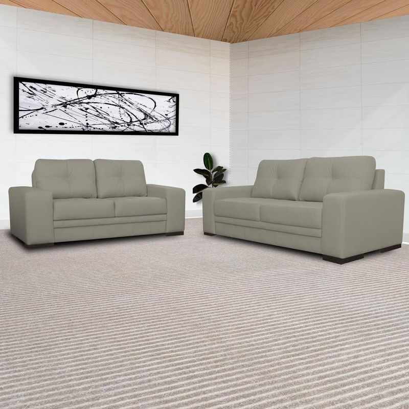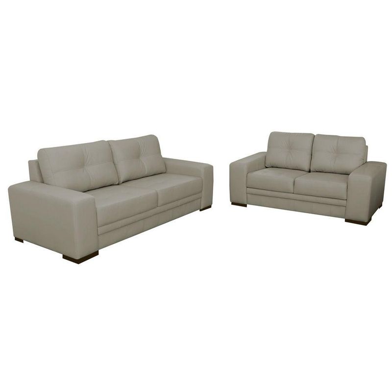 Jogo de Sofá 2 e 3 Lugares Sala de Estar Milano Couro Nude - Gran Belo está perfeito para completar a decoração do ambiente, este produto vai te dar um prazer imenso ao chegar em casa de um dia cansativo no trabalho, pois ao sentar ou se esparramar todo neste sofá você vai se sentir confortável, com certeza é isso que você procura. É ideal para acomodar a visita com aconchego e elegância, seu revestimento em couro garante total resistência e facilidade na hora da Limpeza. Aproveite está oportunidade e compre já em nossa loja, aqui a qualidade é garantida!
