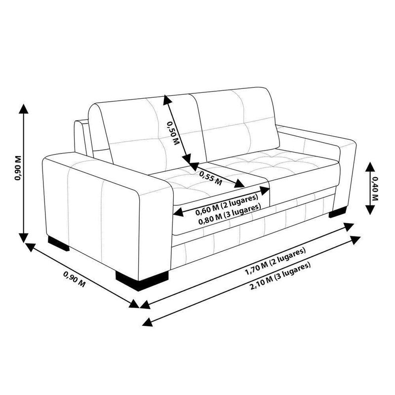 Largura Sofá 2 Lugares: 170cm;