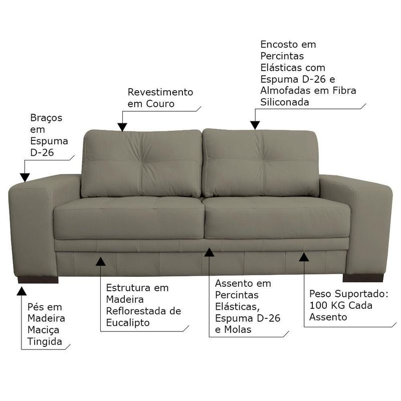 Assento: Percintas Elásticas, Espuma D-26 e Molas no Assento;