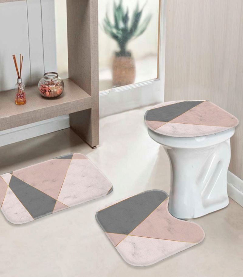 Jogo De Tapetes Para Banheiro Composto por três peças sendo: 1 peça 34cm x 60cm, 1 peça 40cm x 44cm e 1 peça 40cm x 45cm, possui estampa digital de alta qualidade aplicado por termotransferência, base emborrachada antiderrapante. Perfeito para deixar seu ambiente ainda mais aconchegante.