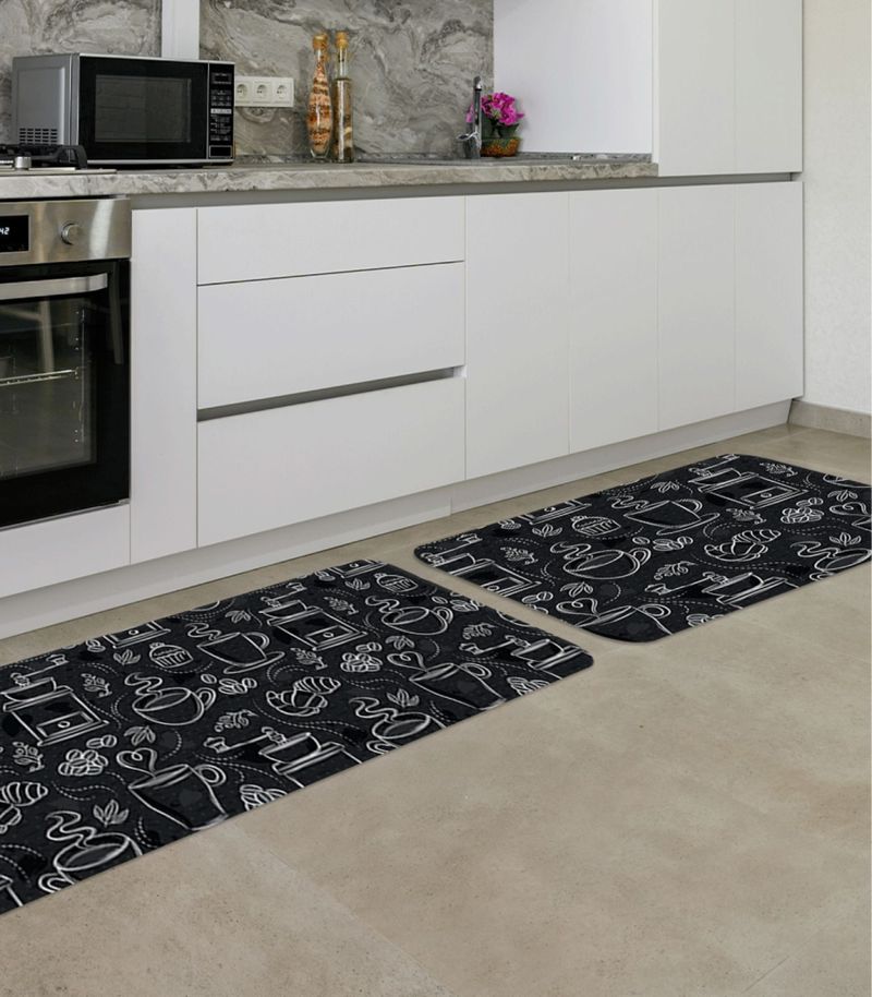 Jogo De Tapetes Para Cozinha Composto por duas peças, sendo: 1 trilho 34cm x 90cm e 1 tapete 34cm x 60cm, estampa digital de alta qualidade aplicado por termotransferência, base emborrachada antiderrapante. Perfeito para deixar sua cozinha ainda mais linda e decorada.