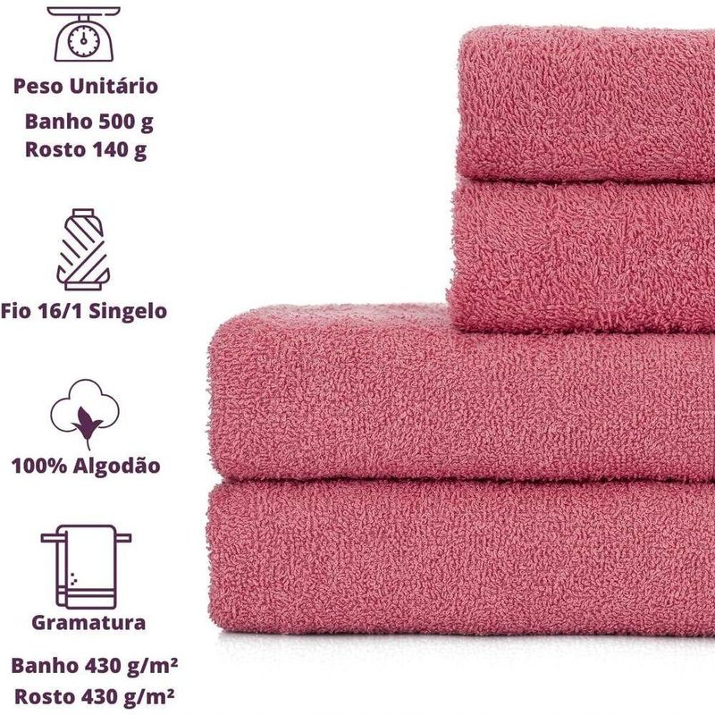 Jogo De Toalhas De Banho 4 Peças 100% Algodão Alta Absorção (2 Banho + 2 Rosto ) Padrão Hotel/pousada - Rosê