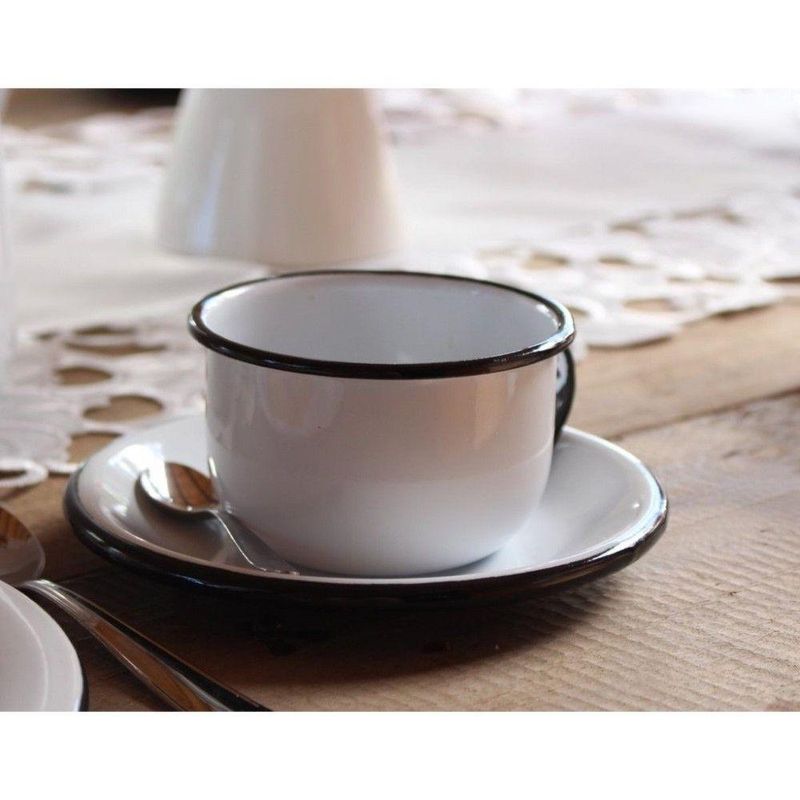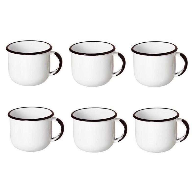 Jogo de Xícara de Chá 06 Peças Esmaltada Branco 240 ml Ewel
