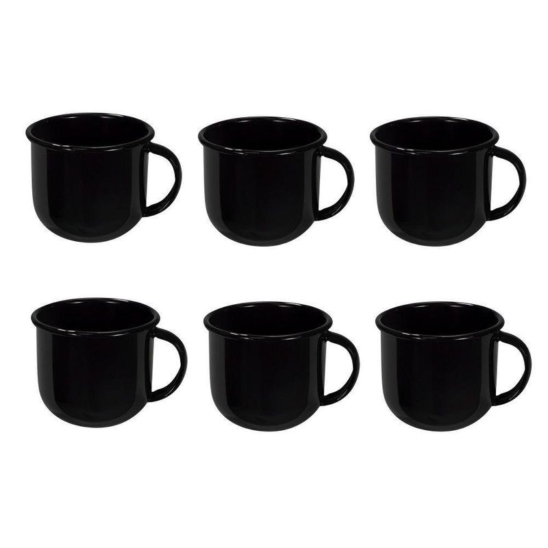Jogo de Xícara de Chá 06 Peças Esmaltada Preto 240 ml Ewel - Na sua casa!