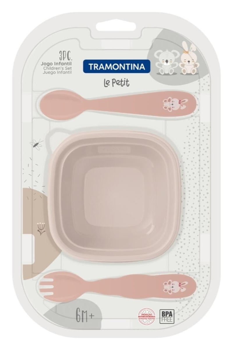 As refeições do seu bebê ficarão muito mais encatadoras com o jogo infantil Tramontina Le Petit rosa 03 peças. Composto por pote e talheres em polipropileno com proteção antimicrobiana que inibem o crescimento de fungos e bactérias, o jogo é ideal para armazenar as refeições do seu bebê, seja para alimentá-los em casa ou em um lanche durante um passeio, pois seu pote pode ser levado ao micro-ondas, freezer ou geladeira. O jogo ainda pode ser levado à máquina de lavar louças e pode ser levado a máquina de lavar louças, facitando a limpeza. Escolha Tramontina e garanta uma rotina muito mais tranquila e agradável com seu bebê!Recomendações de Uso:Recomenda-se o uso destes produtos para crianças com 6 meses ou mais.