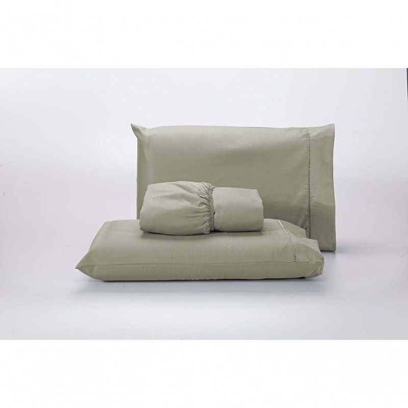 Jogo Lençol 400 Fios Ponto Palito Cama King 3pçs Poliéster - Caqui