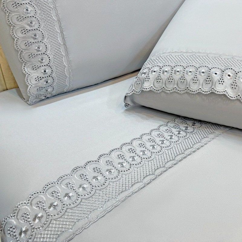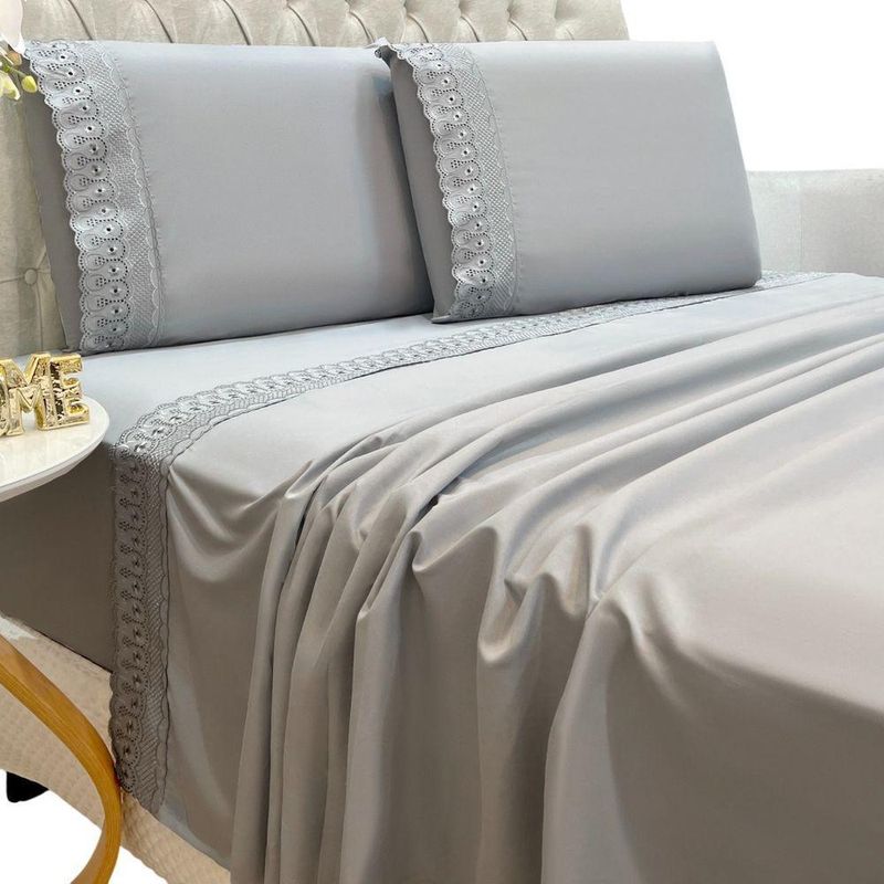 Jogo Lençol Casal Grace Bordado 4pç 100% Poliéster - Cinza
