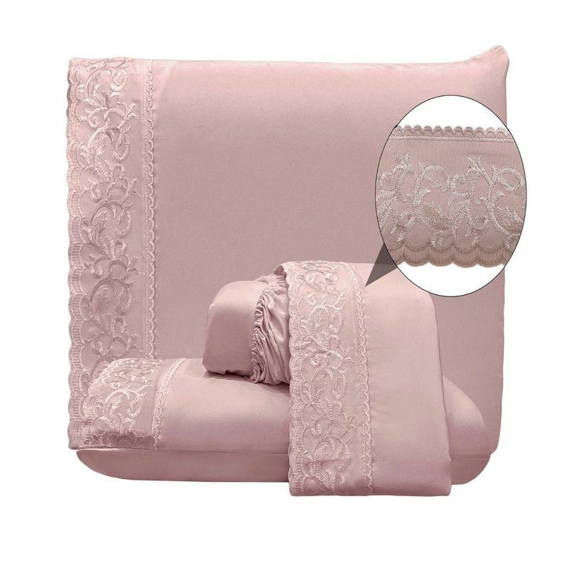 Jogo Lençol Casal Nuance Bordado Inglês 4pç 100% Poliéster - Malv