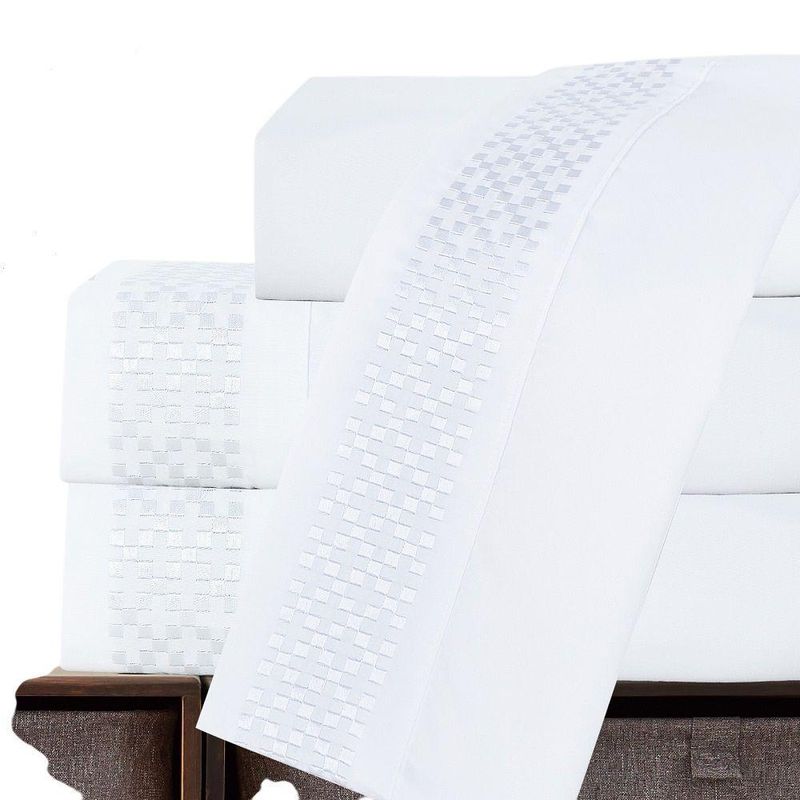 Jogo Lençol Queen Elegance Bordado 4pç 100% Poliéster - Branco