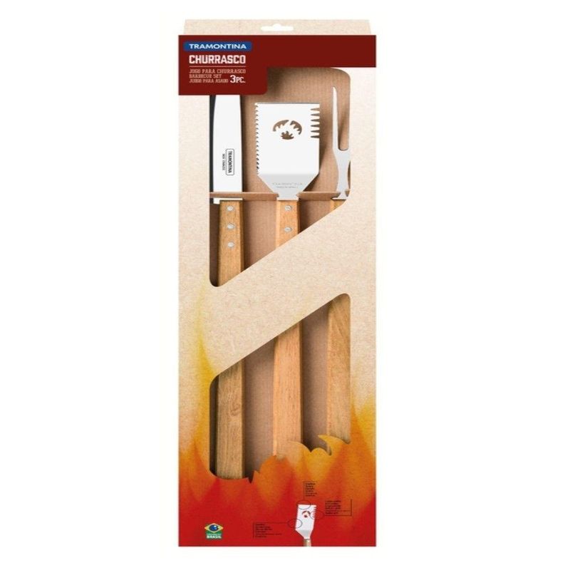 Jogo para Churrasco 3 Peças em Aço Inox e Madeira Tramontina - Conteúdo do Jogo