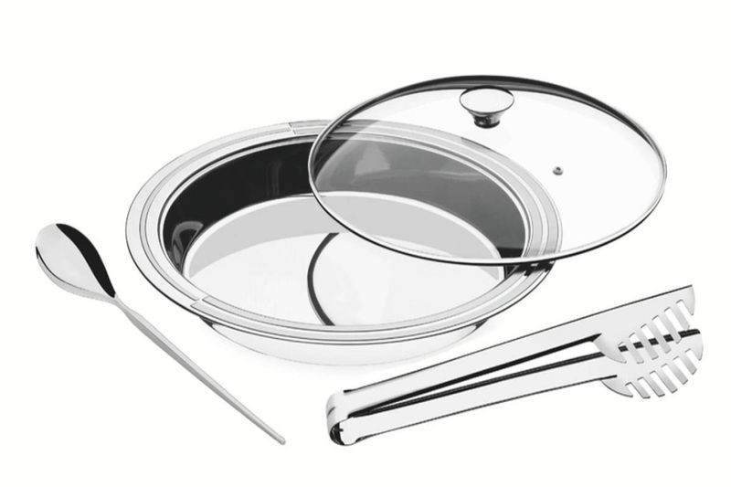 - Peça com acabamento do aço em brilho e detalhes em alto relevo fosco nas bordas, própria para o uso diário, combinando com qualquer ambiente.