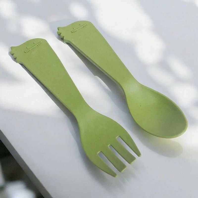 Jogo Prato Infantil Divisórias Com Copo E Talheres Dino Baby Fibra De Bambu Pp Lyor