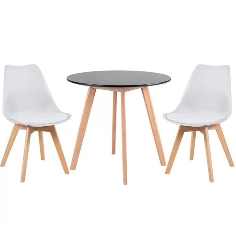Kit - Mesa Redonda Leda 80 Cm Preto + 2 Cadeiras Estofadas Leda Branco