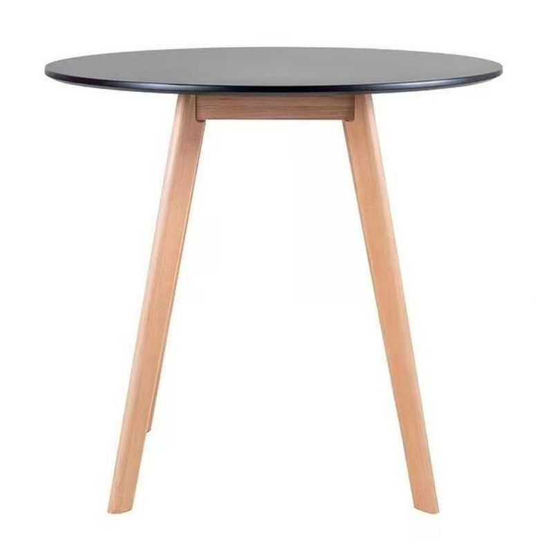 Cadeira leda: material do encosto: polipropileno - material do assento: couro pu - material dos pés: madeira - altura do encosto: 82 cm - altura do assento: 44 cm - largura do assento: 48 cm - profundidade do assento: 43 cm - distância entre os pés: 42 cm - peso suportado: 130 kg. Mesa redonda leda: material do tampo: mdf laqueado (laca fosca) - material da base: madeira - altura: 70 cm - diâmetro do tampo: 80 cm - garantia: 3 meses.