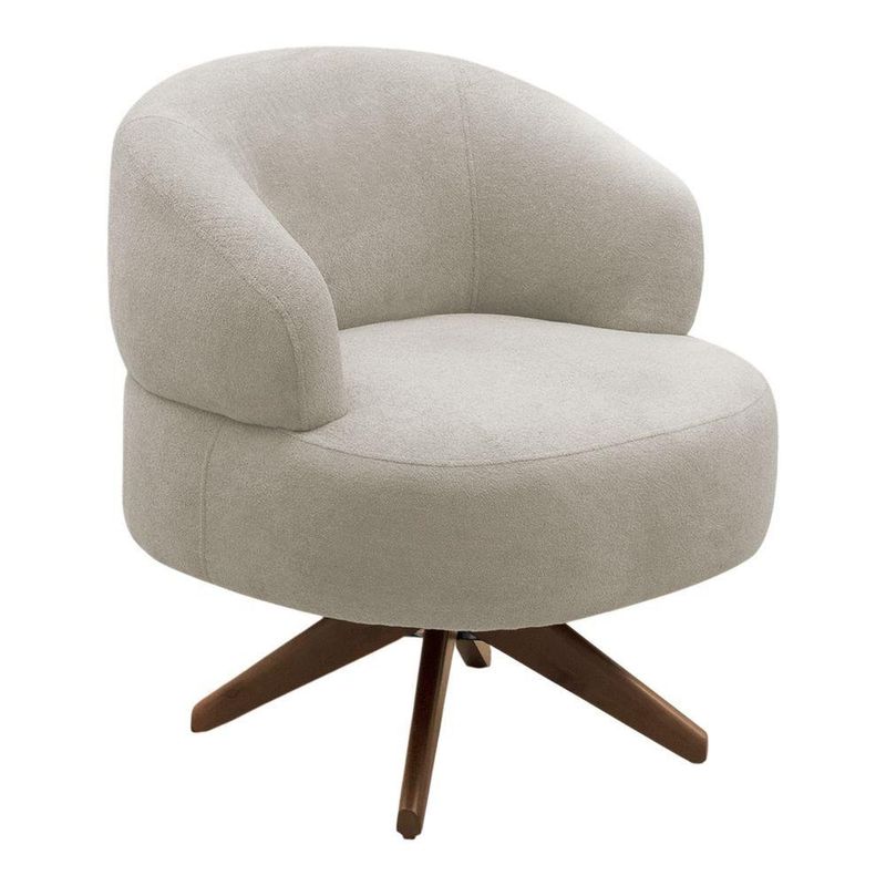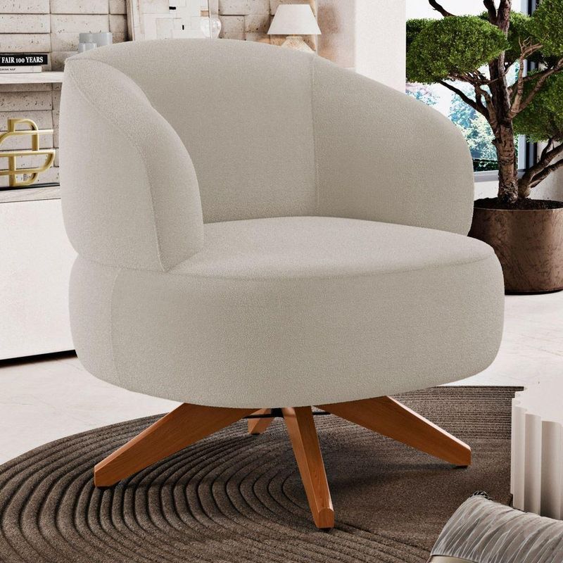 Kit 02 Poltronas Decorativas Orgânicas Living Have Base Giratória Bouclê Bege - Desk Design