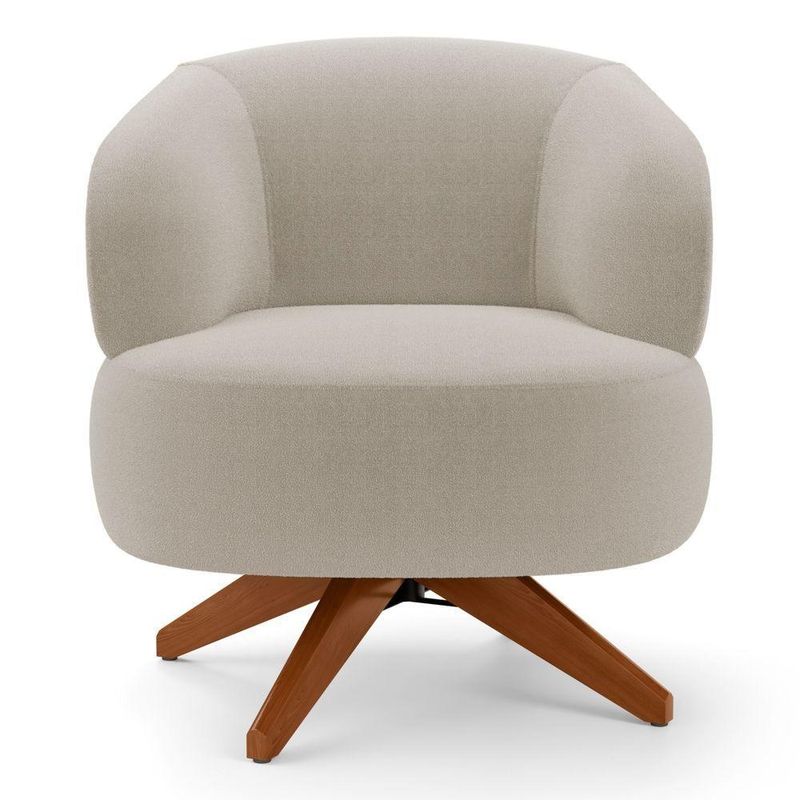 Poltrona Decorativa Orgânica Living Have Base de Madeira Giratória: conforto, design e funcionalidade em um único móvel. Ideal para quem busca um toque sofisticado e acolhedor em ambientes modernos. Desenvolvida com estrutura em madeira de eucalipto tratada e reforços em MDF, a Poltrona Have oferece resistência e estabilidade. O assento com espuma D-26 e molas espirais garante conforto prolongado, enquanto o encosto em espuma soft e os braços em espuma D-20 proporcionam maciez e apoio ergonômico. As percintas elásticas asseguram durabilidade superior e a base giratória em madeira adiciona mobilidade e elegância. O acabamento com costura rebatida confere ao design um visual moderno e refinado.