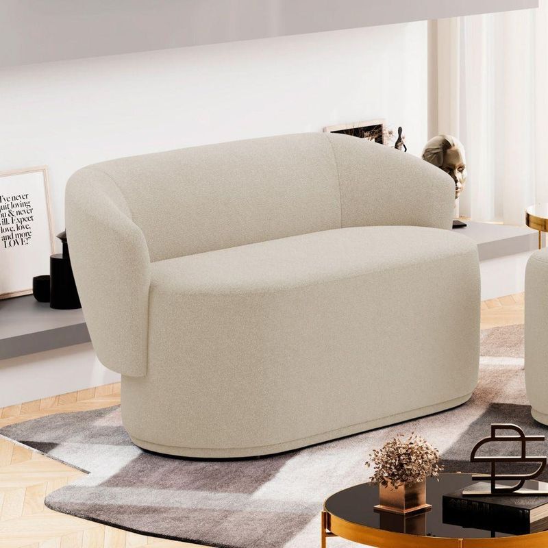 Kit 02 Poltronas E 01 Namoradeira Orgânica Mavi Bouclê Bege - Desk Design