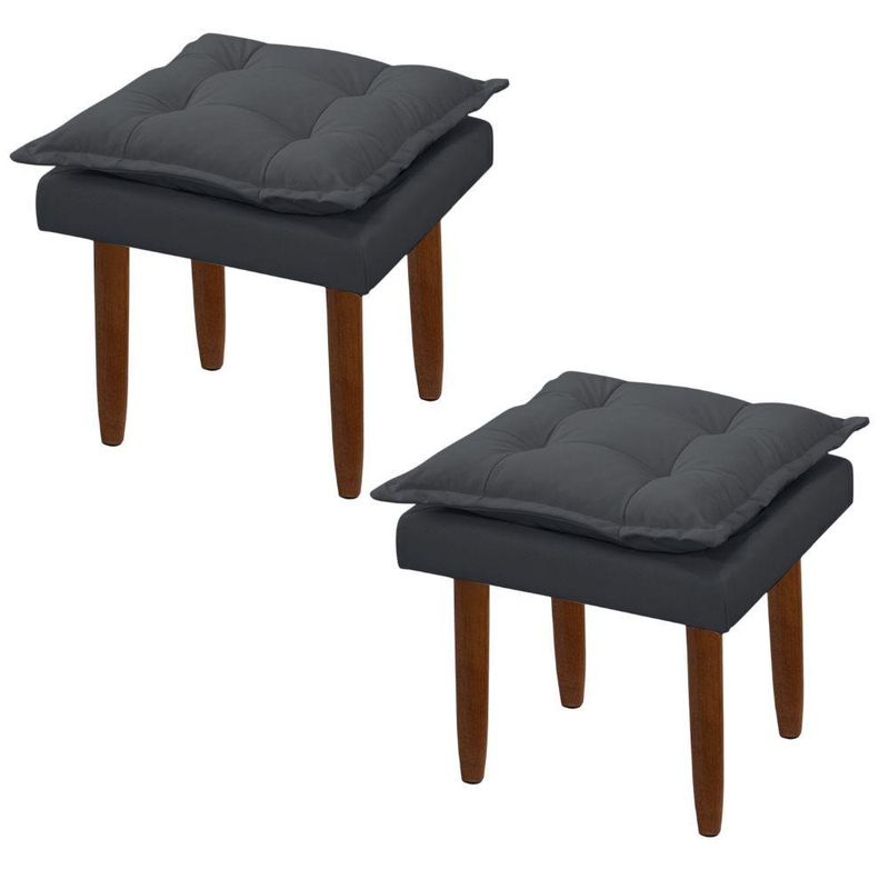 Kit 02 Puff Maria Para Sala De Tv E Estar Quarto Confortável Suede Cinza Mabe Magazine