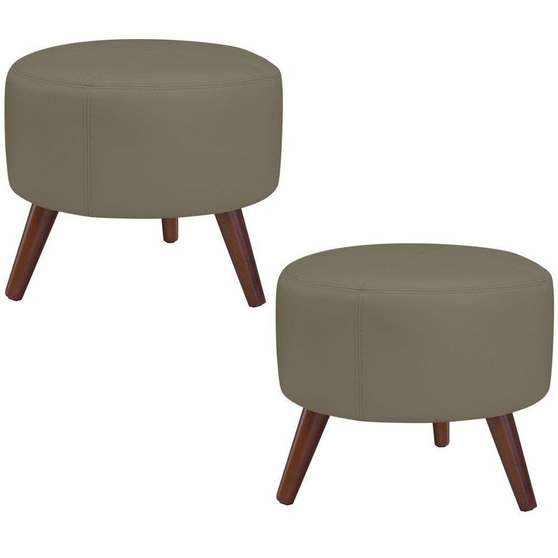 Kit 2 Puffs Decorativos Redondo Couro Fendi