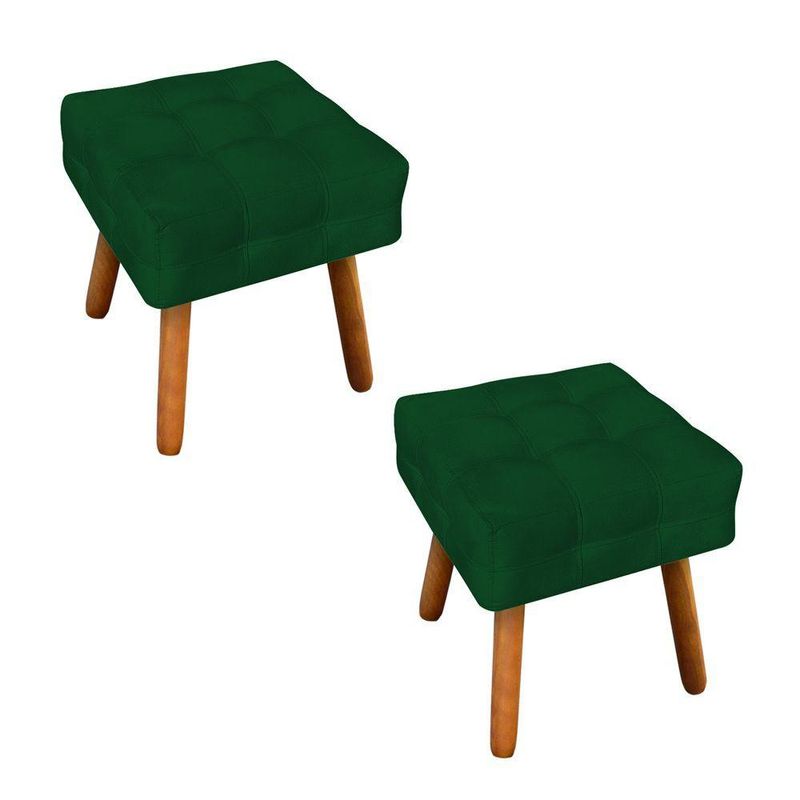Kit 02 Puffs Elisa Suede Verde Pés Palito Castanho D´rossi