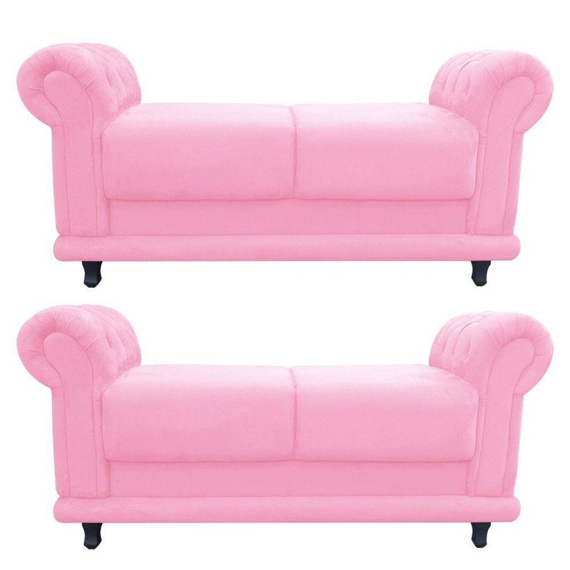 Kit 02 Recamier Barcelona Namoradeira Calçadeira Suede D´rossi -rosa Bebê