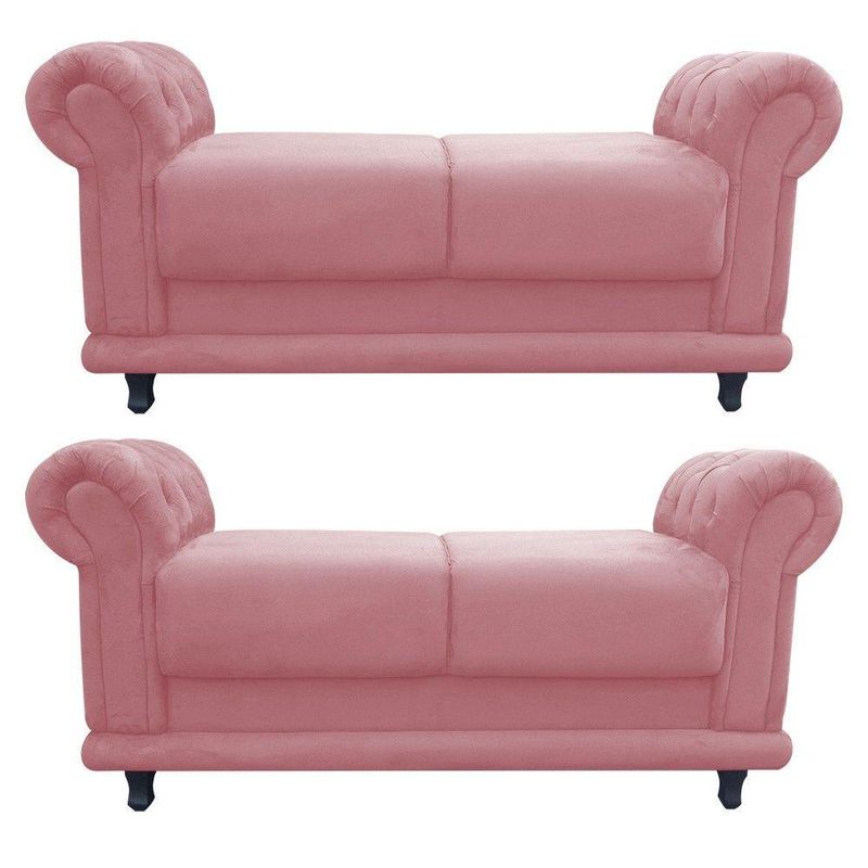 Kit 02 Recamier Barcelona Namoradeira Calçadeira Suede D´rossi -rose