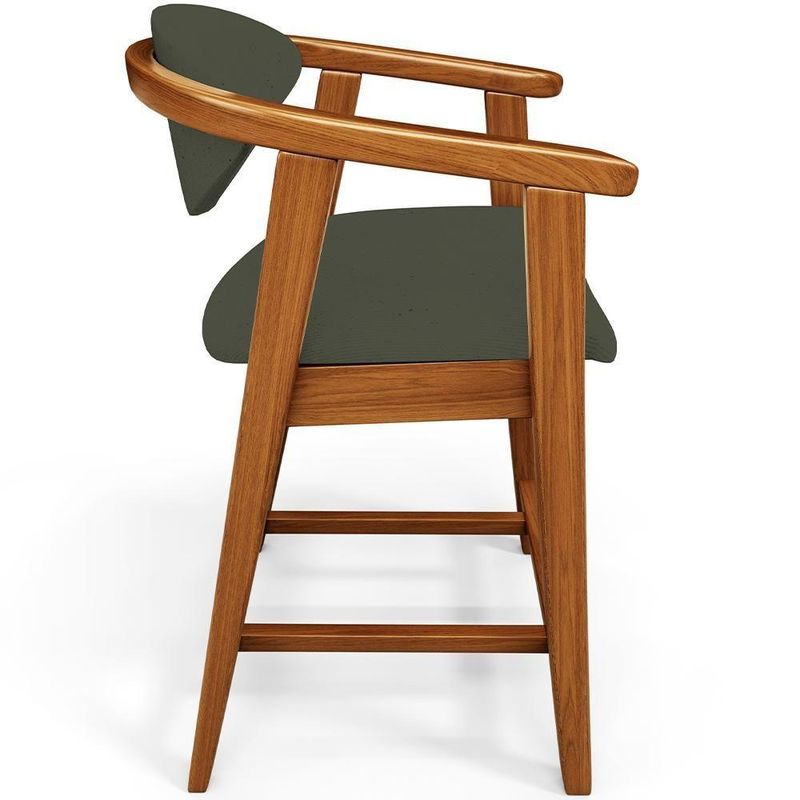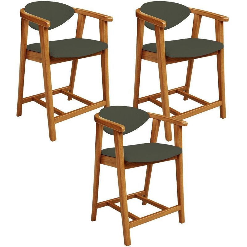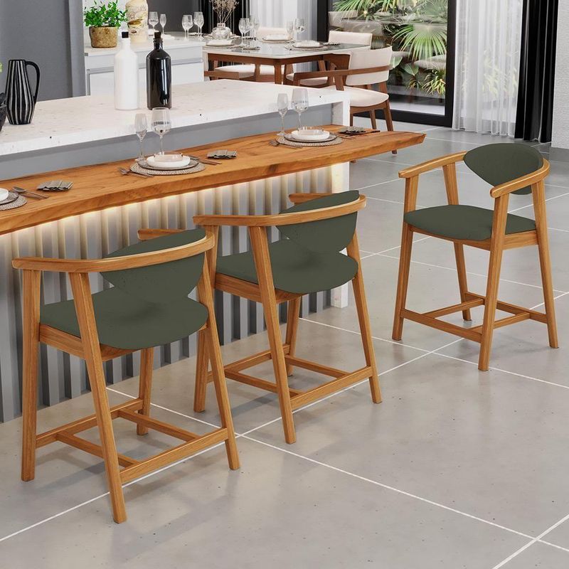 Kit 03 Banquetas Baixa Para Cozinha Sala Jantar Bancada Cecília L02 Linho Verde Musgo - Lyam Decor