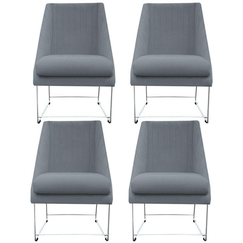 Kit 04 Cadeiras Ana Base De Ferro Prata Suede Bege - D'classe Decor