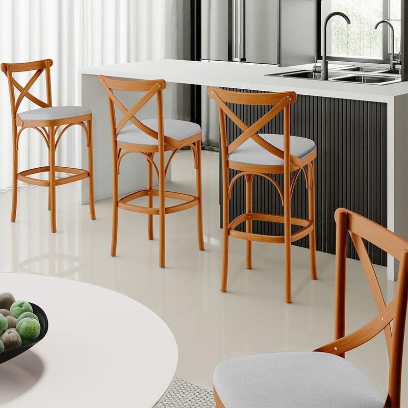 Kit 05 Banquetas Altas Cozinha Bancada Bar Sala De Jantar Estofada ávila L02 Linho Cinza - Lyam
