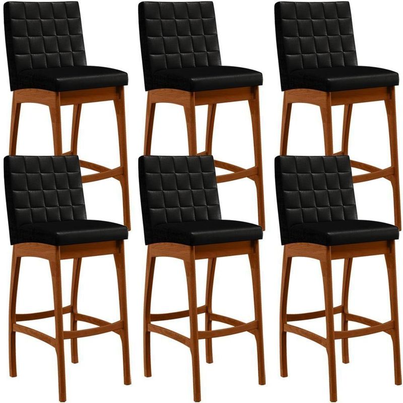 ndo muita excelência, o Kit 06 Banquetas Altas Para Cozinha Sala de Jantar Fixa Mila L02 Facto Preto Metalizado - Lyam Decor é o complemento que faltava para deixar sua casa ainda mais extraordinária. Seu encosto com costura em padrão quadriculado e assento estofados, centralizam em si uma graciosidade estonteante, sem perder todo o seu conforto. A estrutura em madeira, na cor nozes, também é digna de notoriedade, por imprimir bastante personalidade a sua decoração. Vale ressaltar ainda, o apoio para os pés que garante maior segurança à mesma.
