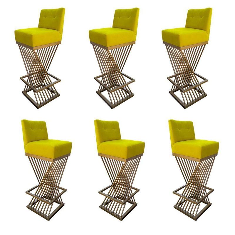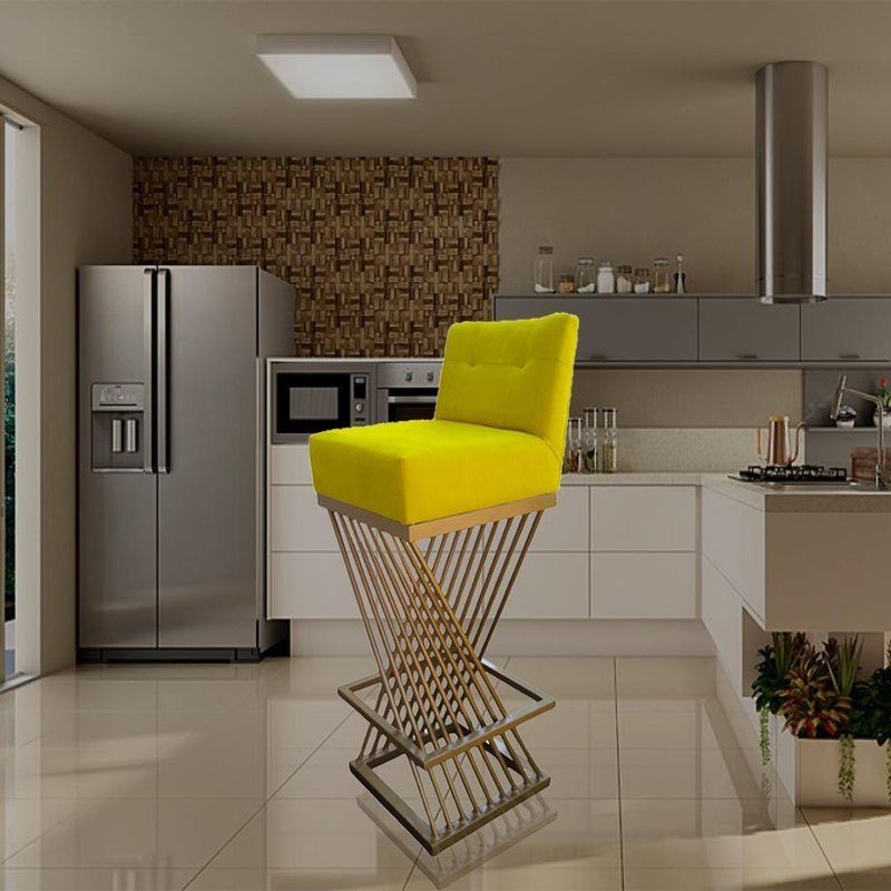 Kit 06 Banquetas Luma Base De Ferro Sued Amarelo - D'classe Decor