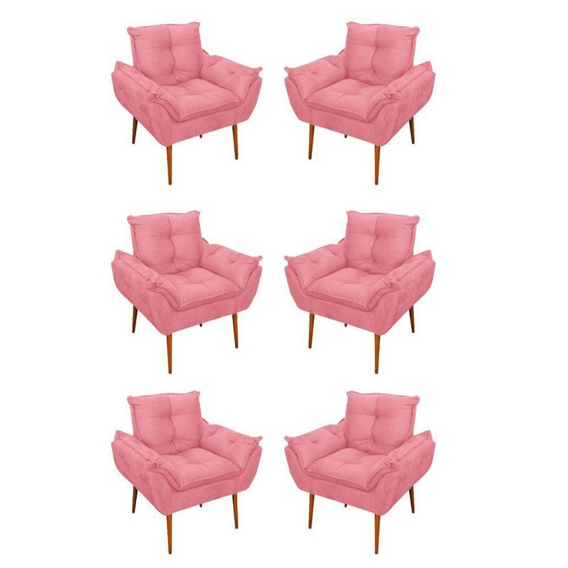 Kit 06 Sofás 1 Lugar De Luxo Opala Sala, Quarto Suede Cor:rosa