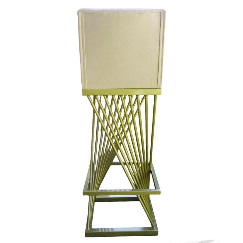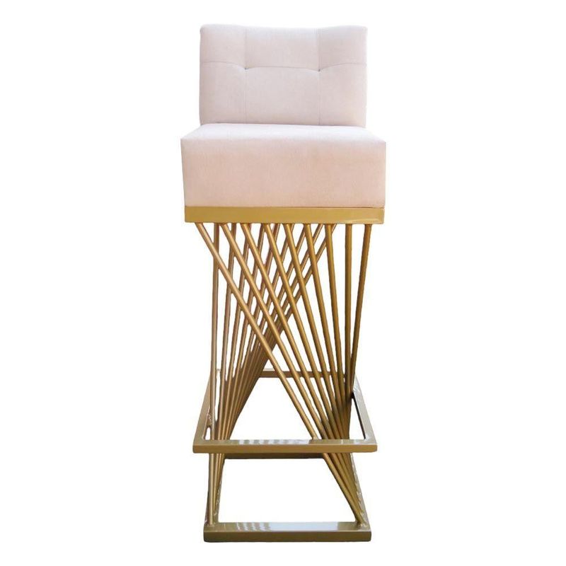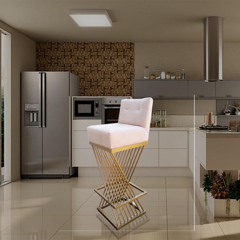 Contando com um design inovador nossa Banqueta possui um diferencial no desenho de sua Base de ferro, além de assento e encosto estofados.