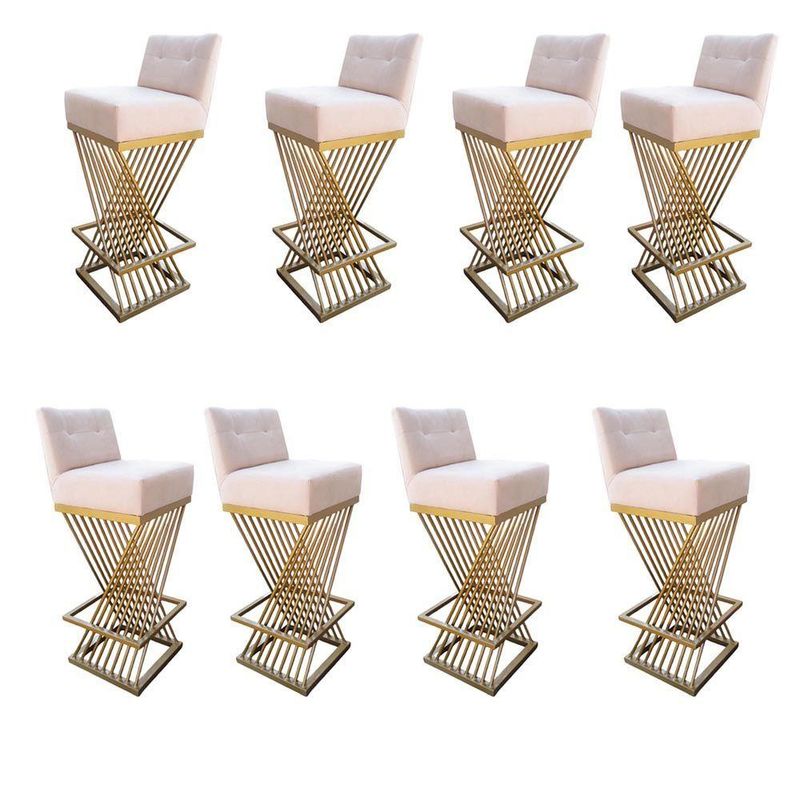 Kit 08 Banquetas Luma Base De Ferro Sued Bege - D'classe Decor