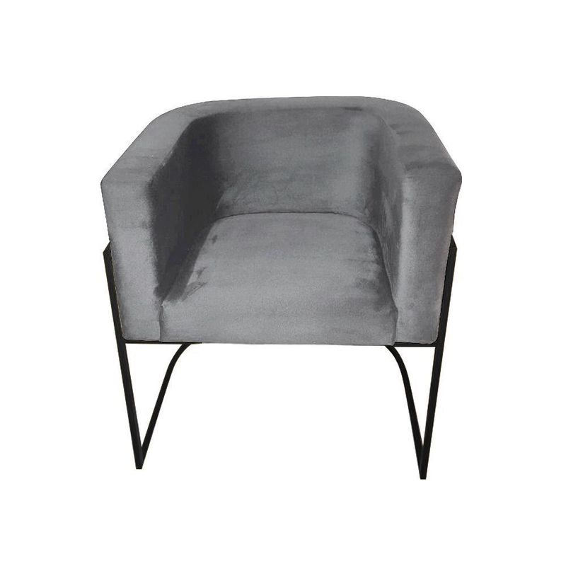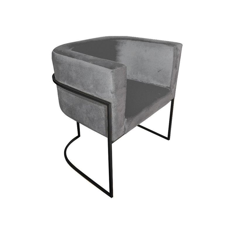 Kit 10 Poltronas Decorativa Sala De Estar Base De Ferro Preta Veludo Cinza - Cinza