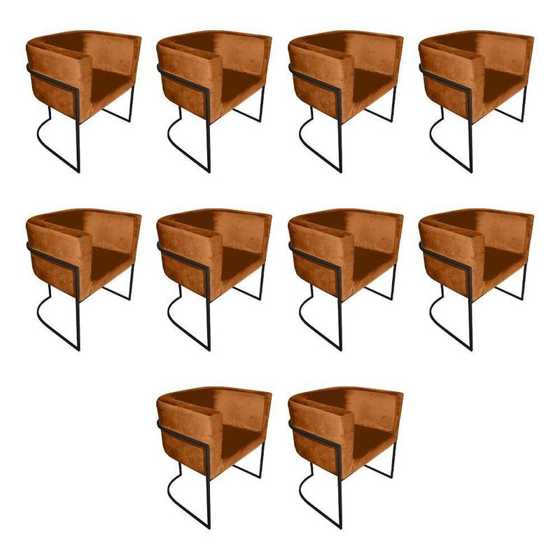 Kit 10 Poltronas Decorativa Sala De Estar Base De Ferro Preta Veludo Terracota - Laranja