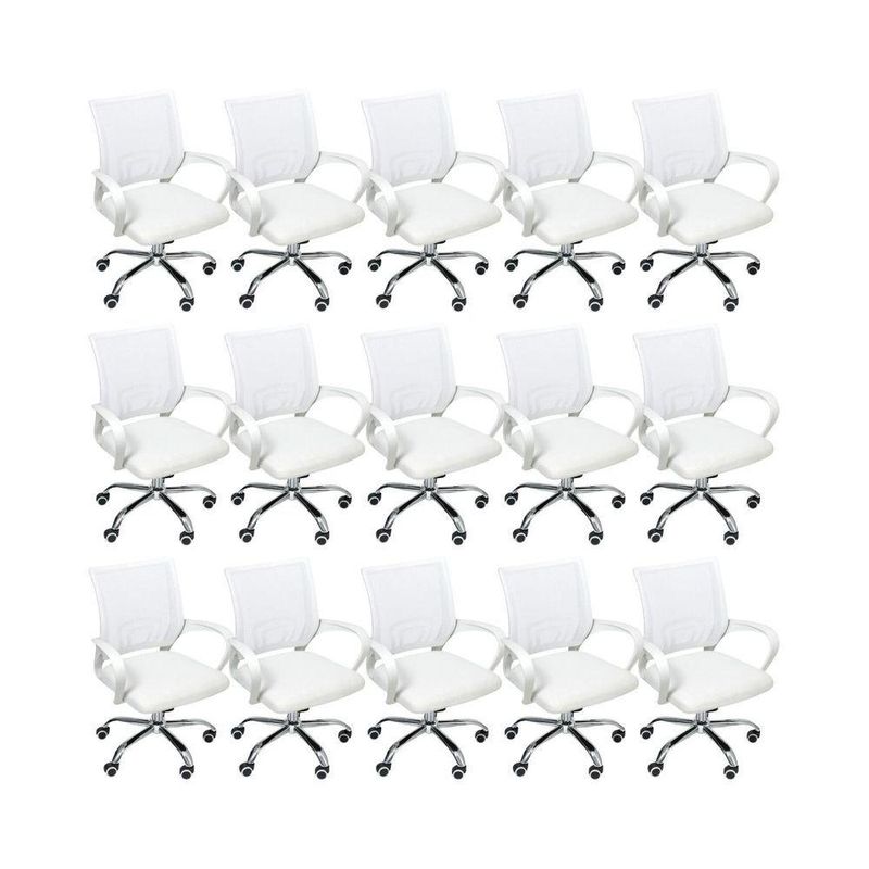 Kit 15 Cadeiras De Escritório Begonia Tela Mesh Ergonômico Branco