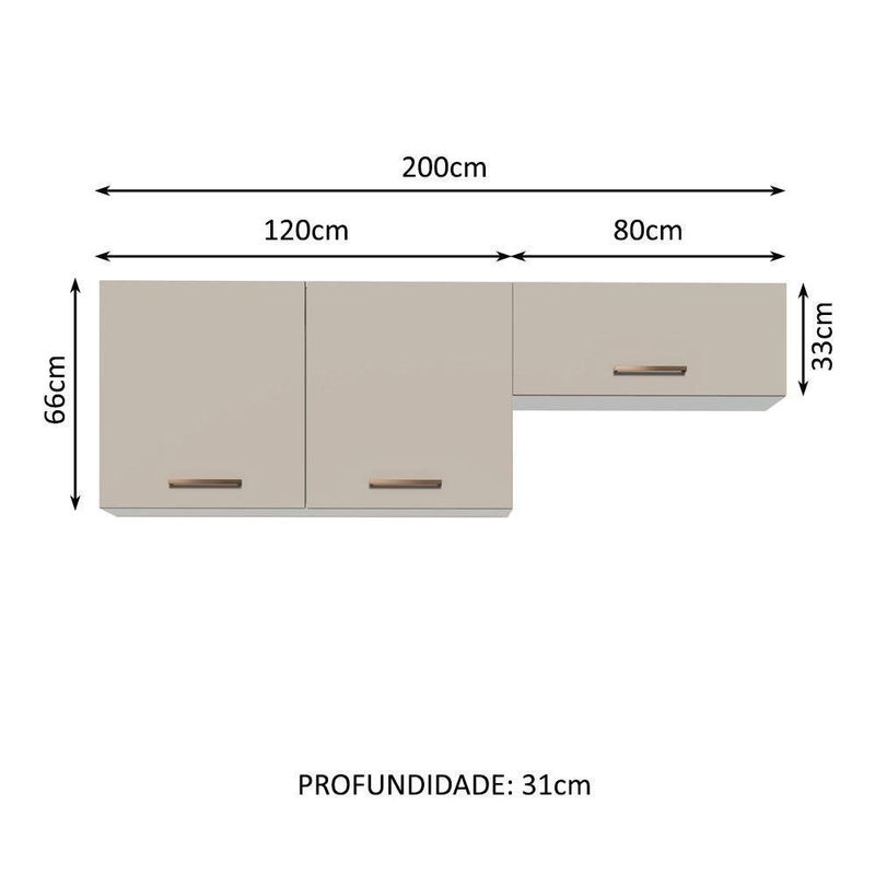 Kit Com 2 Armários Aéreos Multiuso 3 Portas Branco/crema Agata Madesa Branco/crema