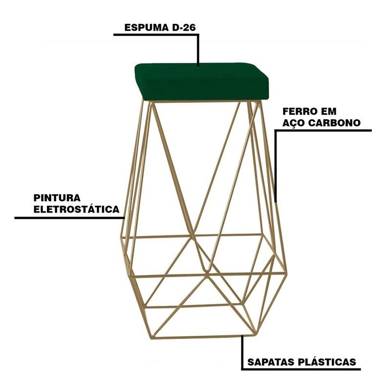 Kit 2 Banqueta Decorativa Kathy Base Gold Suede Verde - Gran Belo é ideal para você que está a procura por soluções inteligentes que completem sua decoração, pois ela se adapta a vários ambientes, como sala, cozinha e área gourmet. Você não vai perder essa oportunidade, vai? Dimensões do Produto: