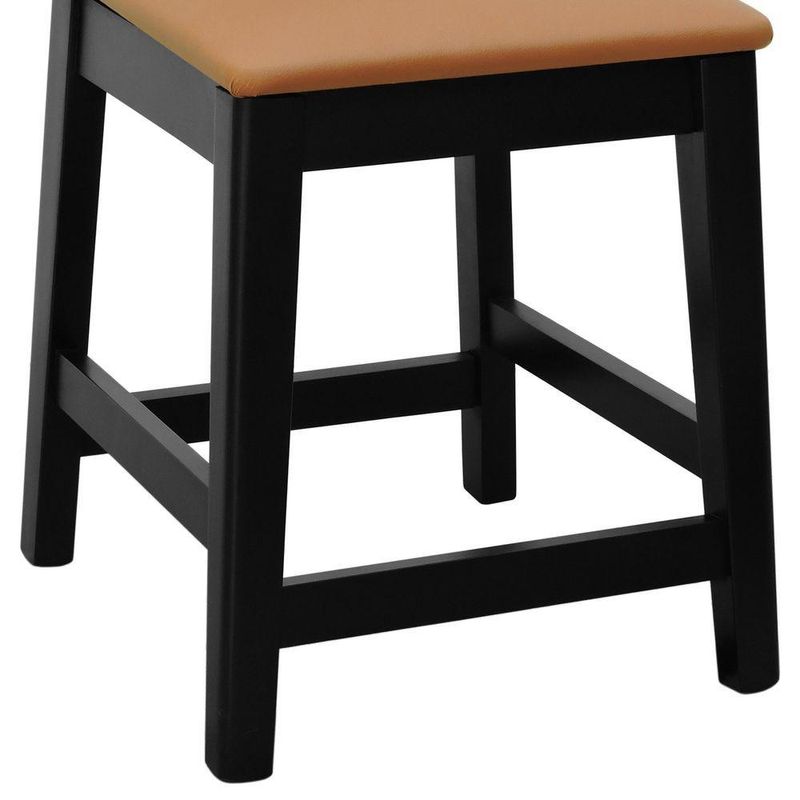 Kit 2 Banquetas Baixa/cadeira Gabi Madeira Maciça Encosto Telinha Assento Estofado - Preto Assento Estofado Corano Caramelo