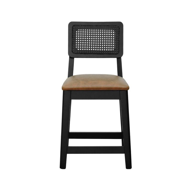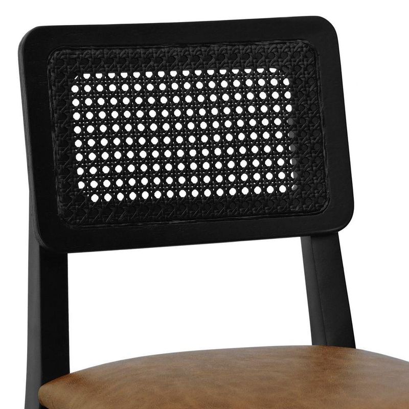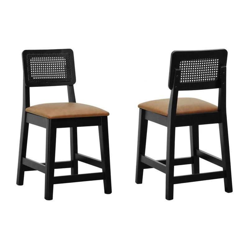 Kit 2 Banquetas Baixa/cadeira Gabi Madeira Maciça Encosto Telinha Assento Estofado - Preto Assento Estofado Corano Marrom Mescla