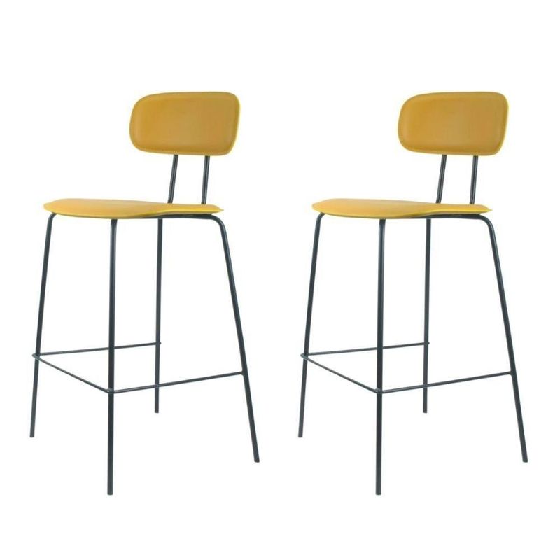Kit 2 Banquetas New York Fratini 95 Cm (altura) Base Aço Preto E Assento Poliuretano (pu) Mostarda