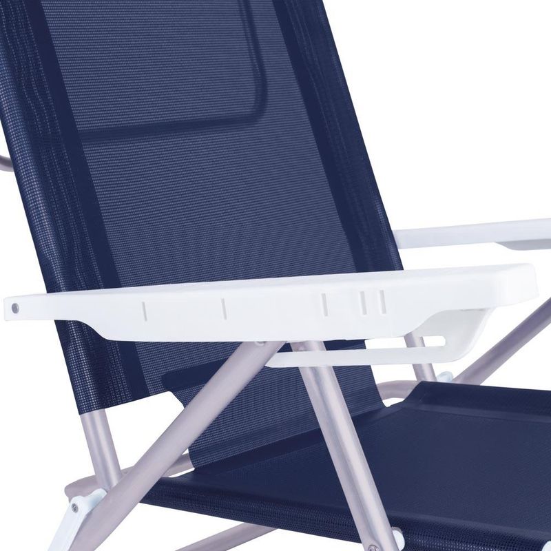 Kit 2 Cadeira Alumínio Reclinável 6 Posições Praia Mor Azul Praticidade em qualquer lugar! Além de seu design arrojado, a Cadeira Summer é bonita, confortável e anatômica. Com ela você vai curtir todos os prazeres do sol, pois os tubos foram projetados de forma a não pressionar as articulações. Fabricada pela Mor, conta com estrutura em tubo de alumínio de excelente qualidade, braços em polipropileno e tela 100 % poliéster com revestimento em PVC. Leve e durável graças à sua estrutura de alumínio, suporta até 120 Kg e foi pensada para ambientes externos e áreas litorâneas, já que não enferruja.A Summer possui seis diferentes configurações de ajustes de altura, apoio para braços e encosto alto, além de estrutura que serve de apoio quando utilizada na posição horizontal. É compacta e pode ser fechada quando for guardá-la, ocupando pouco espaço. De agora em diante ela o acompanhará por todos os passeios e viagens! Descrição do produtoMaterial: AlumínioCapacidade: 120 kgAltura: 85,5 cmLargura: 62 cmComprimento: 74,5 cmPeso 2,40 kg Imagens meramente ilustrativas, todos os itens que ambientam o produto não estão inclusos.