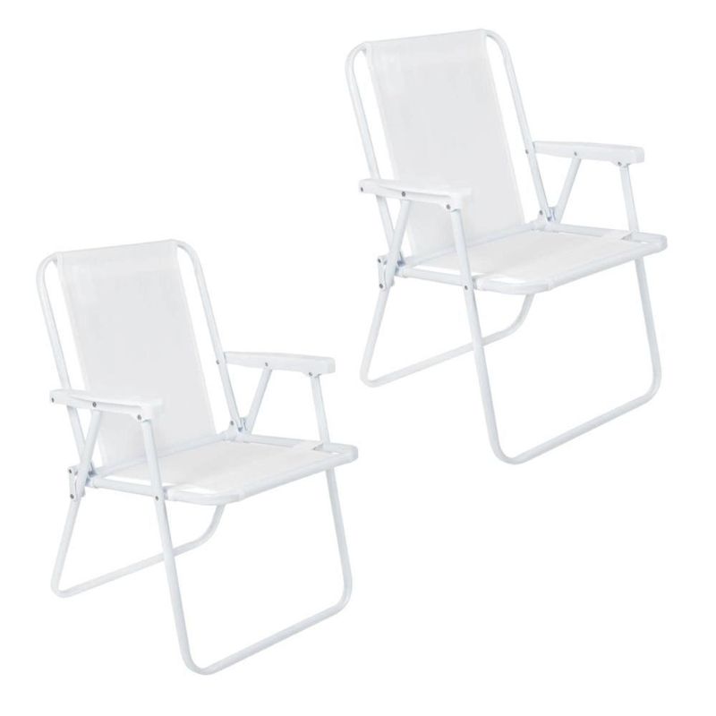 Kit 2 Cadeira De Praia Alta Em Aço 110 Kg Branca Mor