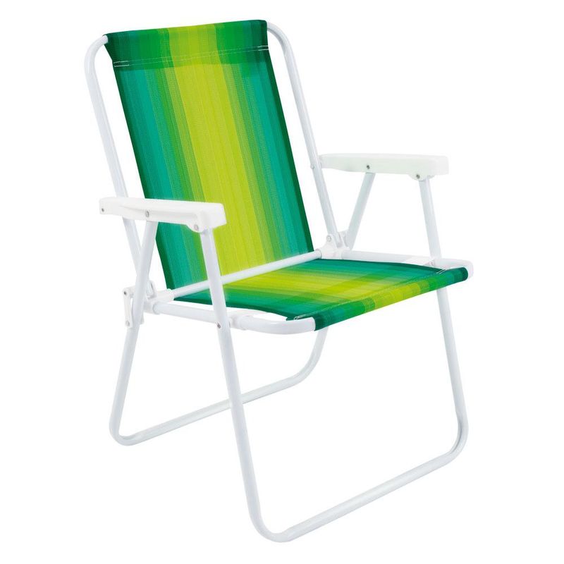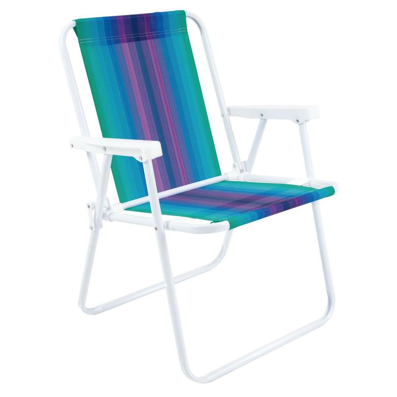 Kit 2 Cadeiras de Praia Alta em Aço Cores Variadas Mor Dobrável e fácil de carregar, a Cadeira Alta Aço, além de tudo, é prática e confortável, perfeita para te acompanhar na praia, no camping, na pescaria ou no final de tarde com os amigos na varanda ou jardim de casa. Muito resistente, tem estrutura fabricada em aço carbono com acabamento em pintura epóxi à pó branca e peças plásticas em polipropileno, suportando até 110 Kg. Para guardá-la, basta dobrar e colocar em qualquer cantinho da sua casa. Sua tela é produzida em 100 % polietileno em diferentes modelos de tecido listrado. Basta escolher entre as suas cores preferidas e começar sua coleção! Descrição do produtoQuantidade: 2 Cadeiras Material: Aço PintadoCapacidade: 110 kgAltura: 72 cmLargura: 54,5 cmComprimento: 53 cmPeso: 2,00 kgProduto enviado em cor aleatória, não é possível selecionar Imagens meramente ilustrativas, todos os itens que ambientam o produto não estão inclusos.