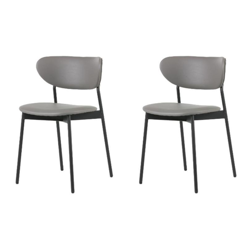Kit 2 Cadeiras Agatha Rivatti Assento E Encosto Estofados Em Pu Cinza Base Em Aço Preto Pintado à Pó