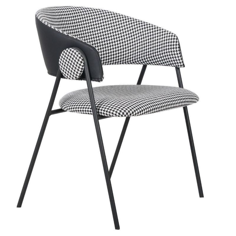 Kit 2 Cadeiras C/ Braços Toulouse Júlia Mara Fratini Assento Pied De Poule Encosto Pu Preto Base Aço