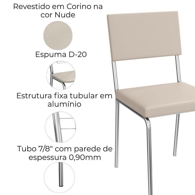 Kit 2 Cadeiras Cromada Sala Jantar 2c128cr Corino Nude Kappesberg Nude