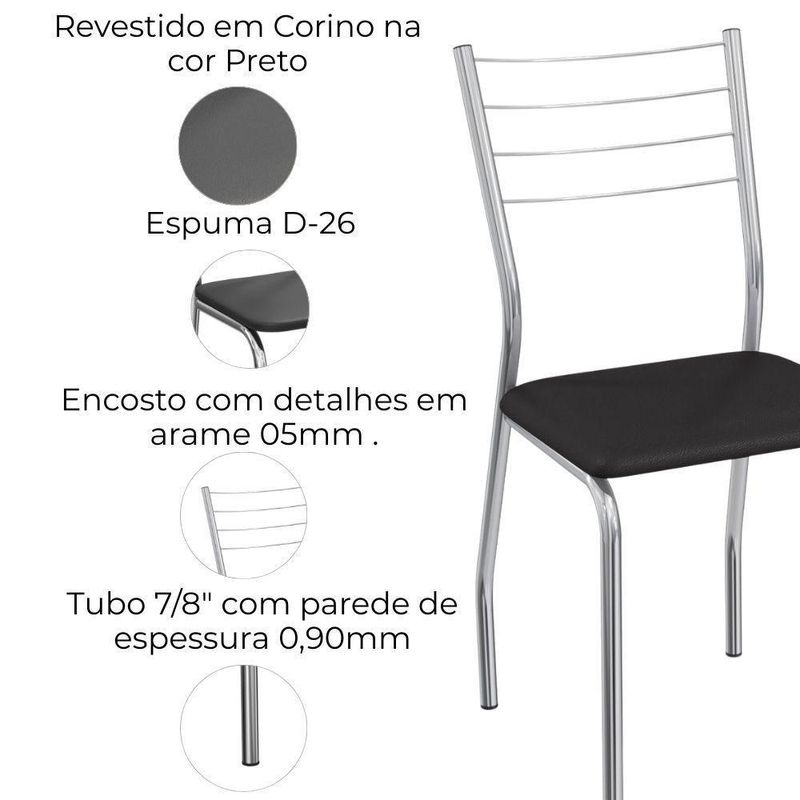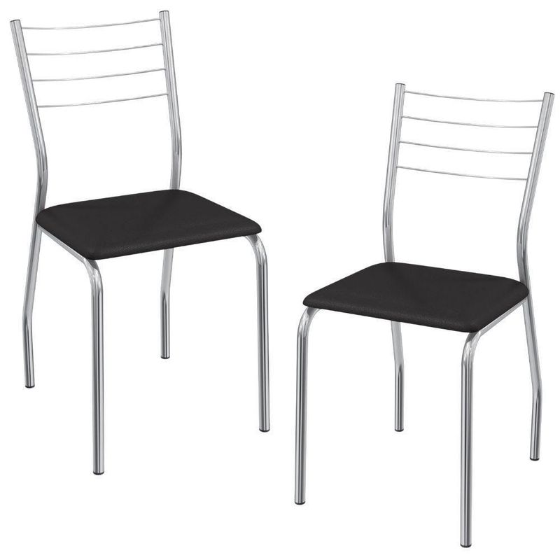Kit 2 Cadeiras Cromada Sala Jantar 2C140CR Corino Kappesberg Preto